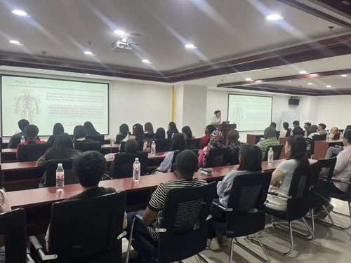 留学生们参观以岭药业中药标本馆 络病课程学习 留学生们还学习了英文授课的络病理论及其指导下的产品。学生们对我司的抗衰老研究及八子补肾胶囊十分感兴趣,课堂上不时提问,深刻的感受到了中医络病理论、通络产品、循证医学证据研究的影响力。