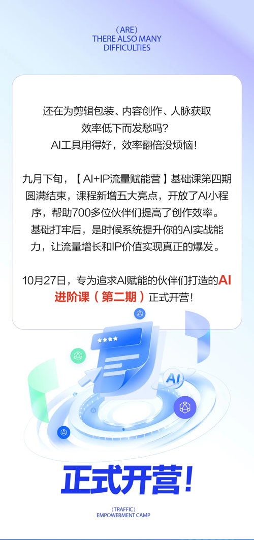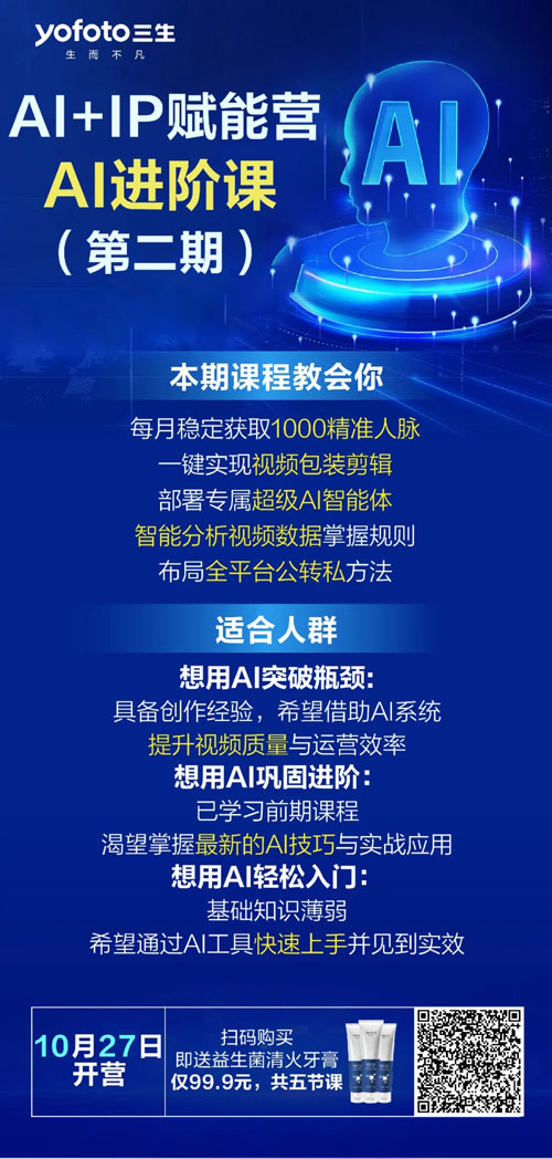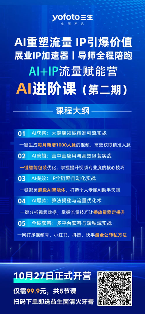 【直报网北京10月24日讯】(三生) ![]() ![]() ![]() ![]() ![]() ![]() ![]() (原标题:三生AI+IP流量赋能营进阶课第二期重磅升级) 责任编辑:一一 【特别声明:部分文字及图片来源于网络,仅供学习和交流使用,不具有任何商业用途,其目的在于传递更多的信息,并不代表本平台赞同其观点。版权归原作者所有,如涉版权或来源标注有误,请及时和我们取得联系,我们将迅速处理,谢谢!】 解读新闻热点、呈现敏感事件、更多独家分析,尽在以下微信公号,扫描二维码免费阅读。