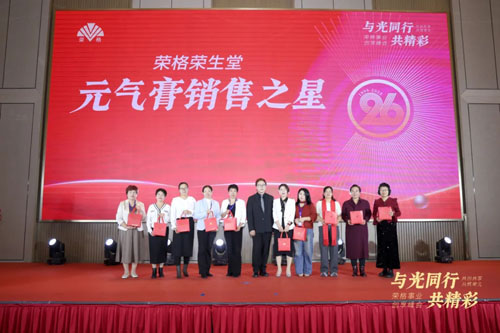 大会特设荣耀颁奖环节,隆重表彰在市场开拓与公益践行中表现卓越的伙伴,颁发“2025第三季度销售飞跃之星、2025年度公益推广大使、新品荣格荣生堂元气®膏销售之星”三大荣耀奖项,鼓舞更多人,与光同行,收获新辉煌!