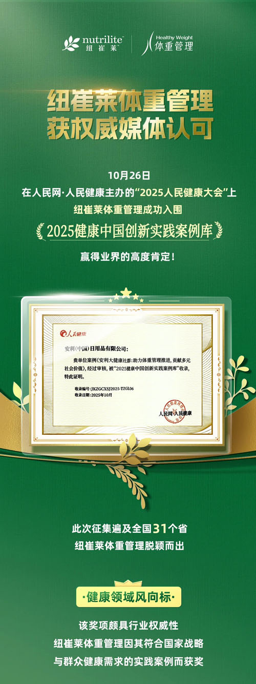 【直报网北京11月14日讯】(安利) ![]() ![]() ![]() ![]() (原标题:纽崔莱入围2025健康中国创新实践案例库) 责任编辑:一一 【特别声明:部分文字及图片来源于网络,仅供学习和交流使用,不具有任何商业用途,其目的在于传递更多的信息,并不代表本平台赞同其观点。版权归原作者所有,如涉版权或来源标注有误,请及时和我们取得联系,我们将迅速处理,谢谢!】 解读新闻热点、呈现敏感事件、更多独家分析,尽在以下微信公号,扫描二维码免费阅读。
