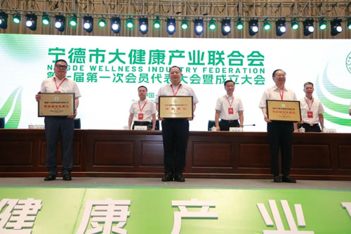 张永宁书记为联合会授牌兰斯琦主席在主持中表示,希望宁德市大健康产业联合会以此为契机,凝聚合力、携手共进,共同把宁德的生态优势、资源优势转化为产业优势、发展胜势。