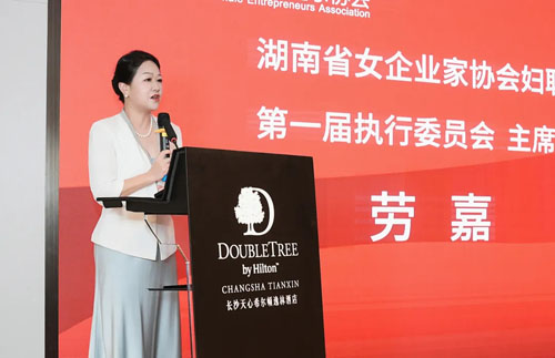 绿之韵集团总裁劳嘉当选女企业家协会妇联主席并作表态发言
