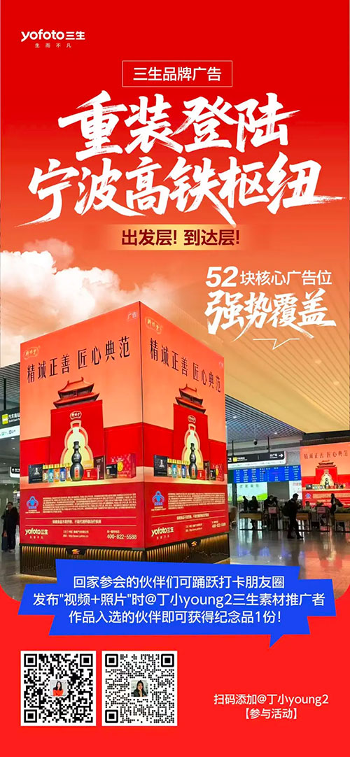 【直报网北京11月27日讯】(三生)当速度与品质相遇,当流量与实力碰撞——继强势亮相宁波栎社国际机场后,三生品牌广告再度重装出击——全面登陆宁波高铁枢纽! 出发层!到达层! 52块核心广告位全线覆盖, 以磅礴之势点亮旅客的每一程目光。 ![]() ![]() ![]() 三生(中国)携旗下 多家子公司品牌矩阵强势集结, 在甬城枢纽打造沉浸式品牌体验场。 每一块亮起的广告屏, 都是三生品牌实力的注脚; 每一次目光停留都是一次信任投票, 更是品牌健康理念的悄然传递。 ![]() ![]() ![]() ![]() ![]() ![]() ![]() ![]() ![]() 从宁波栎社国际机场的全年霸屏, 到宁波高铁枢纽的陆地狂飙, 三生以“海陆空”立体化传播矩阵, 让品牌之光穿透城市脉络, 直抵千万旅客心间! ![]() ![]() △宁波栎社国际机场东方素养广告 高铁飞驰,品牌加速! 三生正以中国智造的硬核实力, 书写大健康产业的新篇章。 ![]() ![]() ![]() ![]() 此刻宁波高铁站 已成为三生品牌的高光秀场! 三生正以磅礴之势 让品牌,被看见! 让实力,被印证! 三生(中国) 让身体更健康 让创业更简单 让生活更美好 欢迎伙伴们参与打卡高铁站