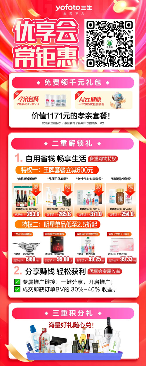 【直报网北京12月15日讯】(三生)定义新标杆,见证消费力量 三生自成立起, 就一直为实现健康家庭生活而奋斗。 我们深谙商业的本质, 是让每个生命更丰盈。 当健康成为家族传承的纽带, 当幸福化作餐桌上升腾的烟火, 当事业生长为守护所爱的铠甲, 当消费不再是简单的购买行为, 而成为一种生活态度的表达, 总有一群人,以敏锐的洞察、高频的复购、真诚的分享,成为品牌与品质生活的“超级连接者”—— 他们,就是三生的“年度复消零售之星”! ( 从左到右:魏润莲 、高菊敏、李葱花、叶麦) ![]() (从左到右: 汪德丰、成挺、石科军、程君联) 今年,三生以“复消和零售”双引擎驱动,从万千忠实客户中甄选出八位复购累计金额名列前茅的佼佼者! ——他们不仅是品牌最资深的陪伴者,更是用行动诠释“热爱可抵岁月长”的践行者! 专属荣耀,六大权益礼遇 每一位“年度复消零售之星”都是品牌的无价之宝。 我们不仅倾听您的声音,更愿为您提供实实在在的荣耀与礼遇: 1.年度盛典尊享席位:免费获邀参加三生年度盛会,内场专属荣誉座席,工作人员全程1V1服务; 2.个人荣誉加冕与专访:为您颁发年度荣誉并专访,让您的故事被倾听、被传递; 3.月度个人专刊展示:您的分享与风采将刊登于公司官网、官微,成为更多人向往的榜样; 4.日常1V1专属服务:随时随地享受贴心对接,您的需求我们优先响应; 5.成为复购项目关键意见消费者:参与产品反馈与优化,您的意见直接影响未来品质升级; 6.特别身份解锁:包括直播特邀嘉宾、新品优享官等持续更新的惊喜权益。 这份荣耀,源于更懂您的平台—— 复消:每日一品,健康必备 严选健康爆款,为懂健康、爱生活的人锁定品质之选, 契合 “自用产品,爱用产品” 的健康消费文化。 ![]() “每日一品” 愿做您健康路上的同行者, 用精选好物与专属权益, 让每一个平凡日子都因健康而闪耀。 零售:优享会,好货不贵,省钱不累 作为三生为会员打造的专属健康生活平台,优享会始终致力于: 通过“性价比×质价比×心价比”完美结合的核心理念,助力每位伙伴开启健康幸福之旅。 让会员真正实现 “自用能省钱、分享能赚钱”,打造消费与收益共赢的全新体验。 ![]() 成为“年度复消零售之星”, 您不仅是品牌的荣耀见证者, 更是三生优享会“优享生活”理念的卓越典范。 让热爱,成为被看见的光!! 消费的终极意义,是让生活更美好; 而您的存在,让这份美好被更多人看见。 无论您是今年的荣耀之星,还是正在路上的潜力伙伴,您的每一次选择、每一句分享,都在为品牌注入温度与力量。 我们始终相信,消费即表达,复购即信任。 未来,让我们继续携手,探索更多健康与美好的可能。 下一个星光,会是您吗?! 如果您也相信,消费可以是一种热爱、一种表达、一种连接, 如果您也愿意,用持续的选择照亮自己与他人的生活—— 那么,请继续与三生同行,与优享会共进。