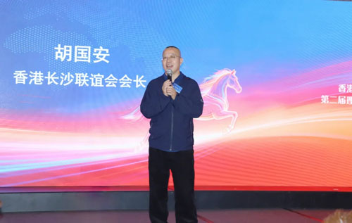 以乡情联谊为初心,以爱港爱乡为使命。会上,胡国安会长发表讲话,他首先向长期关心支持联谊会发展的各级领导致以诚挚谢意,向本次新晋增补的理事会成员表示热烈祝贺。联谊会历经多年深耕发展,会员规模已达26000余人且持续稳步壮大;自成立以来,联谊会始终积极响应国家战略部署,主动对接湘港两地发展需求,在慈善公益践行、湖湘文化传播、经贸文旅对接等领域持续深耕、成效显著。他表示,联谊会现有组织架构虽日趋完善,但结合当前庞大的会员规模与发展需求,仍需进一步优化升级、提质增效。本次拟增补的文化推广大使、副会长、常务副会长及理事等人选,经相关管理部门严格审核考察产生;新晋人员各怀专长、各展所长,既有文艺界名家大咖将为联谊会倾情创作、公益演出,也有区县联谊会负责人、上市公司掌舵人、行业协会带头人等各界精英,必将为联谊会高质量发展注入全新活力,为深化湘港联动赋能聚力。他希望大家继续以乡情为纽带,讲好长沙故事、传播湖湘声音,持续搭建湘港交流合作的坚实桥梁,在助力长沙高质量发展的同时,为维护香港繁荣稳定贡献湘籍力量。