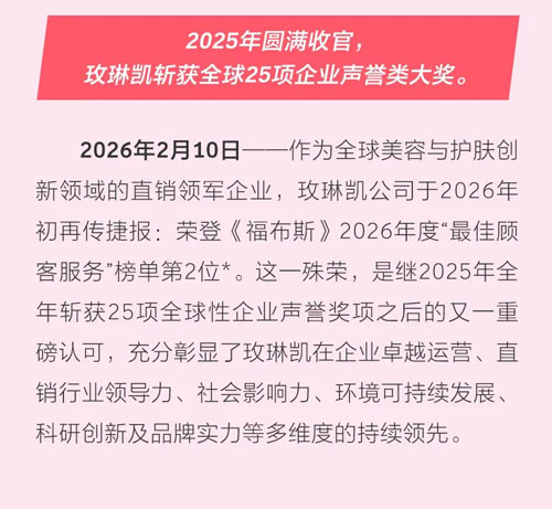 【直报网北京2月13日讯】(玫琳凯) ![]() ![]() ![]() ![]() ![]() ![]() ![]() ![]() ![]() ![]() (原标题:玫琳凯荣登福布斯2026最佳顾客服务榜单) 责任编辑:一一 【特别声明:部分文字及图片来源于网络,仅供学习和交流使用,不具有任何商业用途,其目的在于传递更多的信息,并不代表本平台赞同其观点。版权归原作者所有,如涉版权或来源标注有误,请及时和我们取得联系,我们将迅速处理,谢谢!】 解读新闻热点、呈现敏感事件、更多独家分析,尽在以下微信公号,扫描二维码免费阅读。