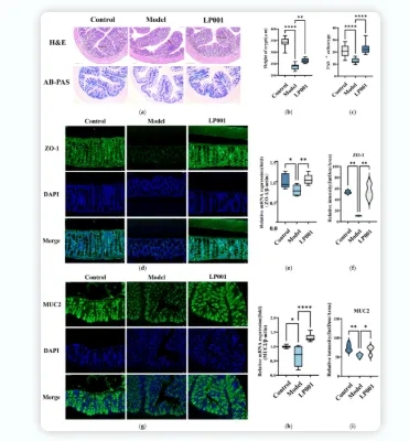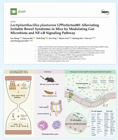 【直报网北京4月13日讯】(完美)2026年1月23日,完美公司自主研发的益生菌植物乳植杆菌LPPerfectus001 (LPP001) 在肠易激综合征改善方面取得重要研究成果,并以题目“Lactiplantibacillus plantarum LPPerfectus001 Alleviating Irritable Bowel Syndrome in Mice by Modulating Gut Microbiota and NF-κB Signaling Pathway”,发表于食品领域国际权威期刊《Foods》。 该研究由完美公司联合中国农业大学科研团队共同完成,首次证实完美益生菌LPP001在肠易激综合征小鼠模型中,可显著改善慢性炎症、降低内脏高敏感性和修复肠道屏障损伤,其作用机制是通过调节肠道菌群和NF-κB炎症信号通路,有效缓解肠易激综合征。该菌株已获得授权专利 (中国发明专利,专利号:ZL202311288200.7) 和商标保护 (LPPerfectus®),并完成产业化,应用于完美公司肠道健康益生菌产品。 ![]() 文章概要图 一、研究背景: 安全有效的干预成为刚需 腹痛、腹胀、一紧张就跑厕所… 这些肠易激综合征的典型症状,困扰着许多人的饮食与生活,是肠道健康领域亟待解决的问题。 肠易激综合征(IBS)是一种常见的功能性胃肠疾病,主要特征为慢性腹痛、腹胀、排便习惯改变,还常伴随内脏高敏感性、肠道菌群失调、低度炎症和肠屏障损伤等问题,严重影响患者生活质量,且现有药物治疗副作用明显。 因此,寻找一种安全、有效的肠道干预手段,是胃肠健康领域需要攻克的难点。 益生菌作为全球公认的良好肠道调节剂,已有大量科学研究证实其安全和有效性,但不同菌株存在功能差异。 完美本次研究意在开发靶点明确、作用机制清晰的特定功能益生菌,为个性化益生菌产品开发提供科学依据和核心原料技术。 二、研究思路: 系统性筛选及验证菌株功能 本研究遵循「体外筛选→动物建模→机制解析」的科研思路,逐步验证植物乳植杆菌LPP001对IBS的改善效果及深层机制: ![]() 1 体外抗炎筛选: 利用脂多糖(LPS)诱导的RAW264.7巨噬细胞炎症模型,从6株不同来源的植物乳植杆菌中,筛选出抗炎活性最高的LPP001; 2 构建 IBS 动物模型: 采用啮齿柠檬酸杆菌感染+避水应激联合构建实验小鼠模型,模拟临床IBS患者的低度炎症、肠道屏障损伤和内脏高敏感等核心病理特征; 3 体内功效验证: 让IBS模型小鼠摄入LPP001,通过检测粪便含水量、肠道形态和长短、内脏敏感性等核心指标,验证该菌株改善IBS症状的效果; 4 多维度机制解析: 结合组织切片染色、RT-qPCR、转录组测序、16S rRNA肠道菌群测序等分子和多组学技术手段,从肠屏障、炎症信号、肠道菌群三个维度,解析LPP001的功效机制。 三、核心发现: 多靶点改善肠道健康 本研究一系列实验结果表明,植物乳植杆菌LPP001对IBS小鼠的改善作用并非单一机制,而是通过修复肠道屏障损伤、调控炎症通路、重塑肠道菌群三者协同作用,实现多靶点干预,具体效果如下: 靶点1:修复肠道屏障,筑牢肠道 “保护墙” 肠道屏障损伤是IBS的核心病理特征,而LPP001可显著改善这一损伤: 在小鼠IBS模型中,LPP001显著上调肠道上皮紧密连接蛋白ZO-1和黏液蛋白MUC2的表达,增强肠粘膜紧密连接性、改善肠道屏障完整性,并减轻内脏高敏感性。 LPP001通过增加小鼠结肠杯状细胞数量、恢复隐窝深度,改善结肠黏膜组织形态,减少炎症细胞浸润,让受损的肠道黏膜得到有效修复。 ![]() LPP001对IBS小鼠结肠组织的影响 注:Control为健康对照组,Model为肠易激综合征模型组,LP001为益生菌干预组。数据以均值±标准差表示,*p<0.05,**p<0.01,***p<0.0001。 靶点 2:抑制NF-κB通路,按下炎症 “终止键” 低度慢性炎症是 IBS 症状持续的重要原因,而NF-κB信号通路是调控炎症反应的核心通路: 在体外细胞实验中,LPP001通过抑制一氧化氮生成,下调IL-6、TNF-α、IL-1β等促炎细胞因子,展现出显著的抗炎特性。 小鼠结肠转录组结合RT-qPCR分析结果显示,LPP001能显著下调NF-κB通路关键基因表达,同时调节Th1/Th2细胞失衡,抑制肠道异常免疫激活,从源头减少肠道炎症反应。 ![]() NF-κB信号通路及Th1/Th2细胞分化相关基因的相对mRNA表达水平 注:Control为健康对照组,Model为肠易激综合征模型组,LP001为益生菌干预组。数据以均值±标准差表示,*p<0.05,**p<0.01,***p<0.001,****p<0.0001。 靶点 3:重塑肠道菌群,平衡肠道“微生态” 肠道菌群失调是IBS发生发展的关键诱因,LPP001可有效调节菌群结构,恢复肠道微生态平衡: LPP001让IBS小鼠的肠道菌群多样性提升,改善菌群紊乱状态,重塑健康的肠道微生态环境。 LPP001能富集产丁酸的有益菌Odoribacter属(丁酸可增强肠道屏障,抑制炎症),抑制促炎的假单胞菌门增殖,从而实现肠道菌群重塑,达到健康的菌群平衡。 ![]() LPP001对IBS小鼠肠道菌群组成的影响 注:Control为健康对照组,Model为肠易激综合征模型组,LP001为益生菌干预组。数据以均值±标准差表示,*p<0.05,**p<0.01。 四、关键功能总结 通过以上多维度的实验验证,植物乳植杆菌LPP001改善肠易激综合征的临床相关症状主要体现在: 1. 缓解腹泻症状: 显著降低粪便水分含量; 2. 改善肠道形态: 恢复结肠与肠道总长度的正常比例; 3. 减轻腹痛不适: 降低结直肠扩张后的腹部回缩反射评分(AWRs),有效缓解内脏高敏感性,减少腹痛、腹部不适等核心症状; 4. 重建肠道稳态: 通过调节肠道菌群、恢复肠屏障损伤、降低炎症水平,改善肠道整体健康状况。 肠道健康,关乎我们每个人的生活质量。此次完美益生菌植物乳植杆菌LPPerfectus001的科研成果登上国际权