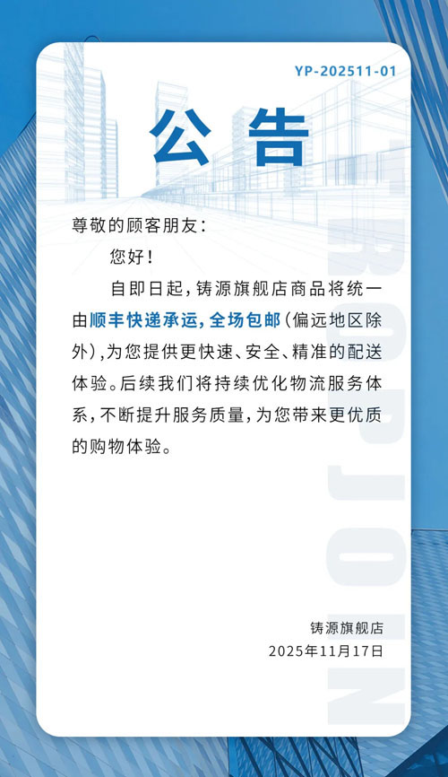 【直报网北京11月18日讯】(铸源) ![]() (原标题:铸源公告:旗舰店商品将统一由顺丰快递承运) 责任编辑:一一 【特别声明:部分文字及图片来源于网络,仅供学习和交流使用,不具有任何商业用途,其目的在于传递更多的信息,并不代表本平台赞同其观点。版权归原作者所有,如涉版权或来源标注有误,请及时和我们取得联系,我们将迅速处理,谢谢!】 解读新闻热点、呈现敏感事件、更多独家分析,尽在以下微信公号,扫描二维码免费阅读。