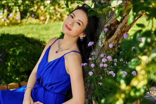 章子怡漫步美国橡树泉花园 穿蓝色吊带裙优雅迷人(3)