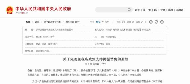 【直报网北京11月3日讯】(央广财经)营养健康产业的四大特征是:来源于天然、提升于科技、支撑于教育、成就于健康! 10月31日消息,日前,财政部等五部门印发《关于完善免税店政策支持提振消费的通知》(以下简称《通知》),明确自2025年11月1日起完善免税店政策,旨在进一步发挥免税店政策支持提振消费的作用,促进免税商品零售业务健康有序发展。 ![]() ![]() 《通知》提出,进一步扩大免税店经营品类,将更多便于携带的消费品纳入经营范围,新增手机、微型无人机、运动用品、保健食品、非处方药、宠物食品等热销商品,丰富旅客购物选择。 根据财政部介绍,《通知》从以下四个方面完善了免税店政策: 一是优化国内商品退(免)税政策管理,积极支持口岸出境免税店和市内免税店销售国产品,鼓励免税店引入更多能够体现中华优秀传统文化的特色优质产品,增加国产品在免税店的销售。 二是进一步扩大免税店经营品类,将更多便于携带的消费品纳入经营范围,新增手机、微型无人机、运动用品、保健食品、非处方药、宠物食品等热销商品,丰富旅客购物选择。 三是放宽免税店审批权限,下放口岸出境免税店设立、口岸出境免税店及口岸进境免税店经营主体确定方式变更等审批权限,优化口岸出境免税店、口岸进境免税店经营面积确定方式,支持地方因地制宜整合优化免税店布局。 四是完善免税店便利化和监管措施,支持口岸出境免税店、口岸进境免税店和市内免税店提供网上预订服务,允许旅客在市内免税店预订后在口岸进境免税店提货,持续提升旅客免税购物体验。 提振消费、推动中国产品“走出去” 谈及《通知》相关政策带来的影响,苏商银行特约研究员付一夫认为,对消费者而言,品类丰富与预订服务优化有助于进一步提升购物体验,国货免税价更具吸引力;对产业端来说,国产品退(免)税政策能够降低经营成本,推动优质国货借免税渠道扩大影响力,同时吸引国际品牌加码布局;对消费市场而言,政策有助于吸引外籍人员入境消费,助力消费市场扩容提质。 中央财经大学副教授刘春生表示,《通知》的举措首先在消费品类的丰富程度上有显著的提升。一方面,《通知》提出“口岸出境免税店、市内免税店应加大对国产品的推介力度”,明确了“引入老字号产品、文创产品、非遗产品等能够体现中华优秀传统文化的特色优质产品”,这将有助于推动中国的产品、中国的文化创意走出去,同时也是让附着在产品上的中国“软实力”走出去。 另一方面,《通知》明确表示“进一步扩大免税店经营品类,丰富旅客购物选择”。对此,刘春生指出,“国产无人机、手机等电子产品当前受到海外消费者好评。”《通知》将这些产品列入范围,后续国内电子产品厂商有望花更大力气提升,完善产品标识、优化产品设计等。 针对提升旅客免税购物体验,《通知》明确提出了多项举措。“便利化水平的提高,是提升免税店的对海外消费者吸引力的重要举措。”刘春生表示,要让消费者买得放心,要从产品源头到售后予以充分保障。“同时,从业态来说,增加免税店点位也是促进消费的重要举措。” 记者关注到,近年来,一系列提振消费政策不断发力。其中今年3月份发布的《提振消费专项行动方案》提出,发展入境消费。今年9月份发布的《关于开展国际化消费环境建设工作的通知》中提到,打造国际化消费环境,提升入境消费的便利性、舒适度。