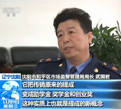 ![]() 涉嫌传销 执法部门展开调查 这个所谓的“容元太华商学院”的赚钱模式,其实就是滚雪球、靠拉人投资赚提成,玩的是空手套白狼,这种赚钱模式是否涉嫌传销和非法集资?记者将掌握的情况,反映给了当地的市场监督管理部门。 沈阳市和平区市场监督管理局局长 武国君:容元太华没有在沈阳经营的合法证件,也没有申请教学的一些资质,从我们现场检查情况看,它是涉嫌无照经营行为。 武国君告诉记者,号称旗下拥有多家公司的“容元太华”集团,是一家注册地在外省的教育咨询有限公司,该公司没有办学资质,在沈阳也没有相关注册信息,目前和平区市场监督管理局已经责令其停止经营行为。另外,对其涉嫌传销和非法集资等问题,执法部门也已经展开调查。