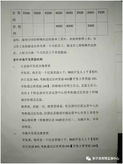 02奖励名称 日出东方奖金制度有直接推荐奖、间接推荐奖、开发奖。 ![]() (湖南日出东方的奖金制度) ![]() ![]() 从上图佣金手续费可见,仅2017年6-7月,手续费用已经达到600万元。爆料者透露,该公司目前已收取代理费4000余万元。 03多个代理级别,虚拟代理管辖区域 日出东方的代理一共4个级别,省代、市代、区县代、个代。公司会在系统上给每个代理划分“管辖区域”,但实际上这个所谓的“管辖区域”完全是一个虚拟的概念。 04消费券1:1人民币提现 日出东方的计酬方式主要以线下虚假交易向平台充钱,按1:5的方式返还,每天返2‰。日出东方以消费券的方式返还,这类消费券的叫法有小米、金米、大米。 1大米/小米/金米=1元 返还的消费券,再通过线下虚假交易提现。 新华商注意到,东方合伙人商城上的商家,如一家“XX商务酒店”提供的服务,既没有标明房型,也没有标明价格和酒店房间的任何信息。 二、东方合伙人商城运行现况 目前,东方合伙人商城已经停止向代理商返利,其线下的商家也已经停止消费返现的活动。 11月14日,记者随机对其中的两家联盟店铺进行调查:一个从事湘菜的加盟商向新华商表示:“那是以前搞活动的,现在已经取消了,没有了。这个事情也不好做,现在已经取消了。” 广州一家连锁餐厅也加入了这个东方合伙人商城,商家对新华商表示:“现在返不了了,这段时间已经停了。以前我们是有跟他们合作啊,合作是因为他们在广州有一个点,有一个服务办事处。”“之前是有给过返利啊,就是来吃饭就返。返了有一两个月吧。现在平台停了,现在返不了了,你来吃也返不了。不过你要来吃也可以的,你说是东方合伙人的,那我可以给你打个8折没问题。以前我们是有参加过这种返利,麦点商城啊也都试过。” 爆料者告诉记者,在今年8月份调查的传销案中,东方合伙人商城已因涉嫌传销被益阳工商局资阳分局冻结了1500万元。该公司由于资金链断裂,在9月30日~10月9日停盘一次,各区域代理,客户前往万达B座48楼维权;11月1日~11月3日开盘,各区域代理和商家又到公司维权。 该公司内部微信群: ![]() ![]() ![]() ![]() (商家维权现场) (日出东方集团董事长张玲玲) |
