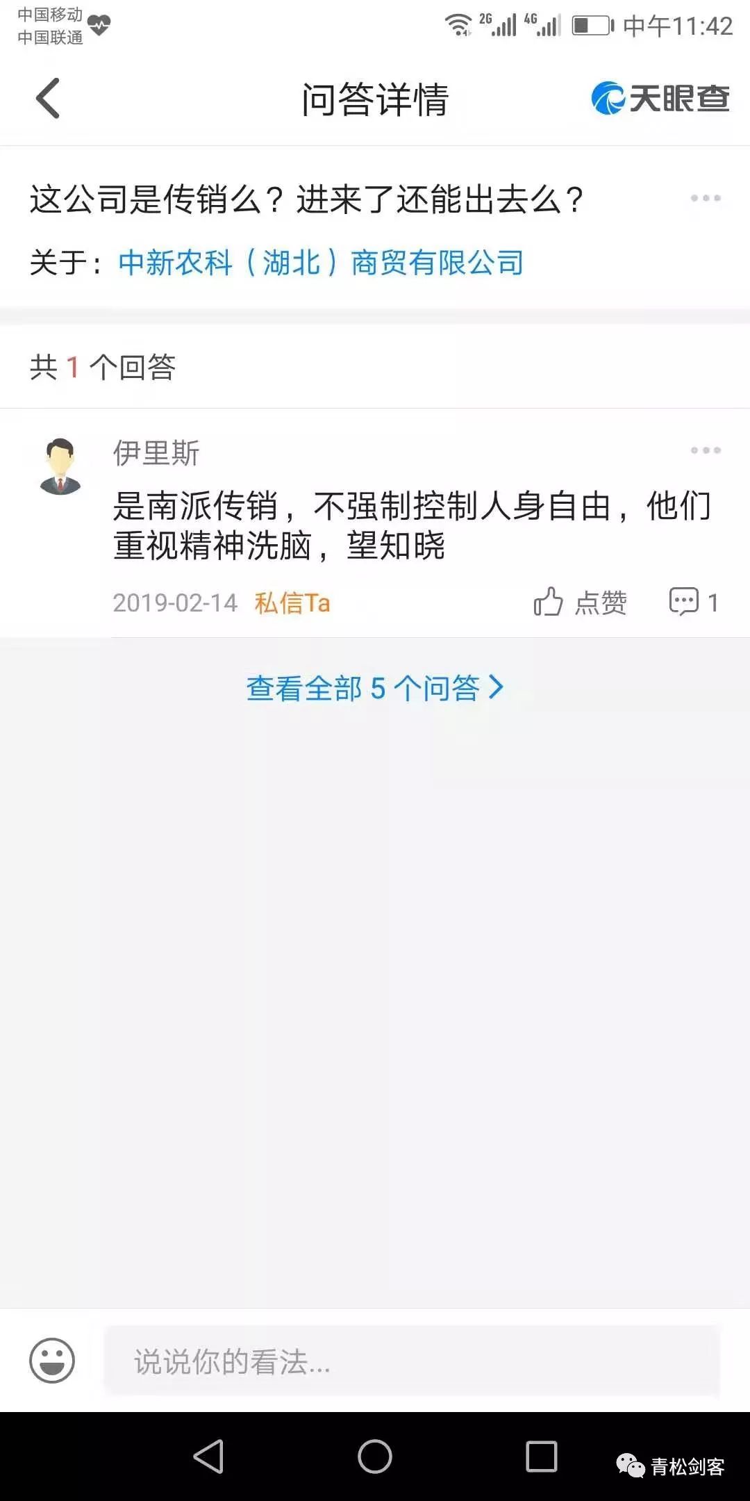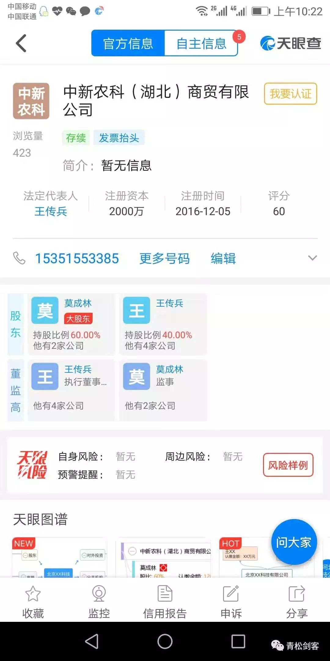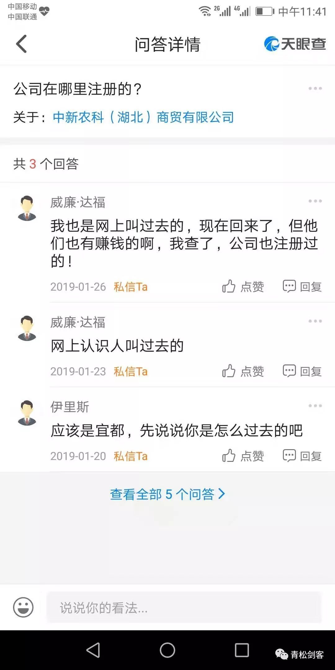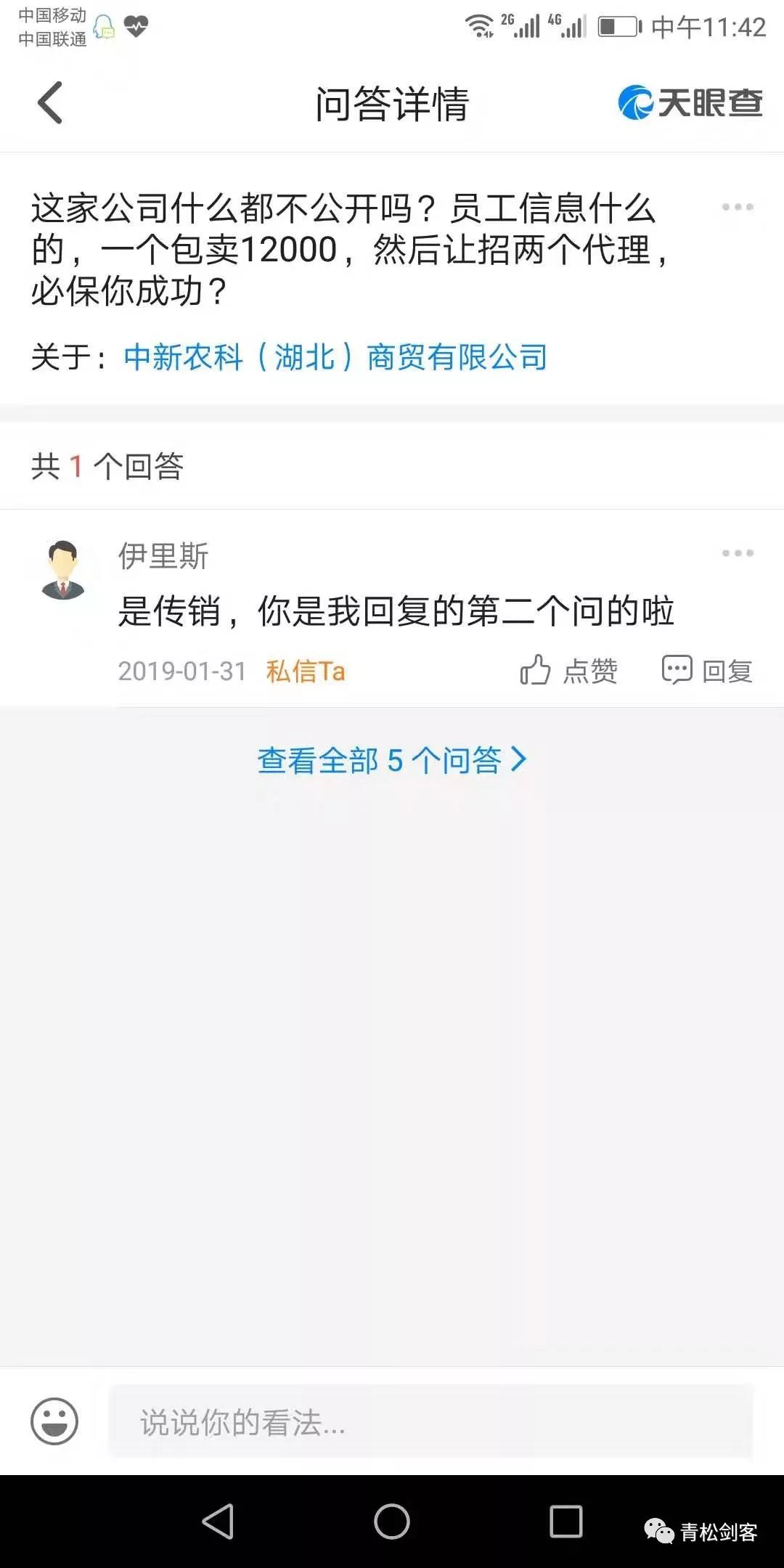 【直报网北京3月12日讯】(青松剑客)近年随着国家对传销组织的不断打击,其生存空间被不断压缩,一些传销组织为了继续行骗不断的去改变自己。近期小编接到投诉,说他进入了传销组织,具体询问得知被女网友骗进去的。但是他们有公司有办公地址。我们来看看这家公司的基本情况。 据受害者提供该公司位于湖北宜都电商小镇一号楼123号中新农科(湖北)商贸有限公司。 我们打开天眼查看一下。 ![]() 再看下网友的回复 ![]() ![]() ![]()