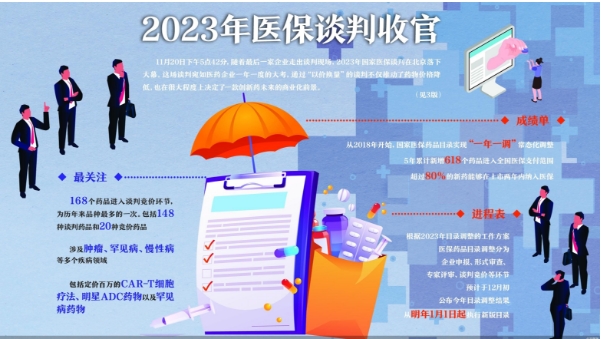 北京商报记者 姚倩 (原标题:168个药品进入最终谈判 2023年国谈收官) 责编:九月 【特别声明:部分文字及图片来源于网络,仅供学习和交流使用,不具有任何商业用途,其目的在于传递更多的信息,并不代表本平台赞同其观点。版权归原作者所有,如涉版权或来源标注有误,请及时和我们取得联系,我们将迅速处理,谢谢!】 解读新闻热点、呈现敏感事件、更多独家分析,尽在以下微信公号,扫描二维码免费阅读。