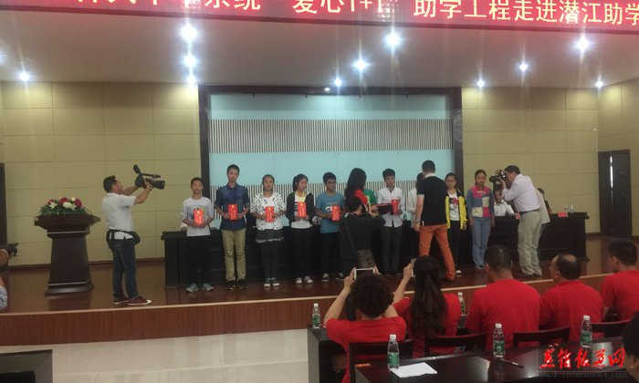 爱心捐赠活动现场 【直报网6月5日讯】(太阳神)有爱就有力量。2015年5月23日,太阳神联合湖南卫视芒果V基金共同举办的“爱心1+1”助学工程公益活动走进了湖北潜江中学,潜江市副市长王玉梅,市委副秘书长陈华,潜江市教育局局长王绪军,湖南卫视芒果V基金对外联络部部长钟雯以及太阳神湖北分公司高级外事经理邱新、全国市场督导何涛等优秀经销商共同出席了此次爱心捐赠活动。 此次活动于湖北省潜江中学四楼报告厅隆重举行,太阳神全国市场督导何涛作为爱心代表向潜江市三所高中(潜江中学、园林高中、文昌高中)共计30名高中生进行了捐赠,爱心善款将帮助他们完成从高一到大学毕业共七年的学习梦想。此举不仅赢得了当地政府及相关部门的高度称赞,湖南卫视、湖北电视台、潜江市电视台及其他新闻媒体也对此进行了特别的关注和报道。