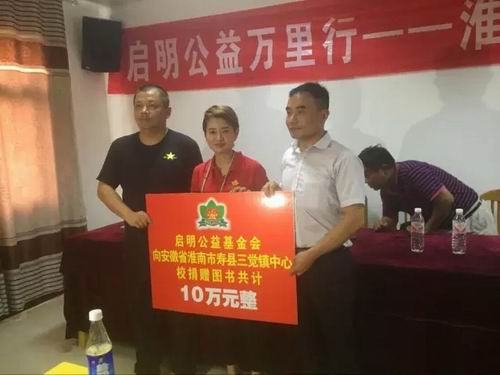 【直报网北京8月31日讯】(罗麦)2016年8月20日,启明公益基金会在安徽寿县三觉镇举行捐赠仪式,为当地中心小学捐赠10万元图书,为三觉镇三流敬老院捐赠20万元物资。 安徽省公安厅政治部副主任、机关党委专职副书记方庆才,北京罗麦科技有限公司安徽分公司经理涂怀祖,三觉镇中心校学校校长谢正才,三觉镇中心校学区管委会主任魏松林及爱心志愿者们出席活动。