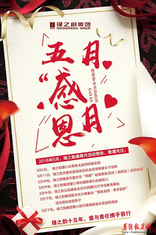 慈悲不是出于勉强,它是像甘露一样从天上降下尘世;它不但给幸福于受施的人,也同样给幸福于施与的人。 ——英•莎士比亚 【直报网北京5月4日讯】(绿之韵)连雨不知春去,一晴方觉夏深。新的五月,2018绿之韵人的爱心感恩月又来临了。 从2004—2017,穿越时光之海。 在这样一个温情的时节,我们曾用一双温暖的手抚慰贫困交加的心灵,用坚实的脚步关爱身逢绝境的母亲、用纯洁无瑕的爱心援助无情天灾后的灾民…… 我们坚信:“生命的旅途并不在长或短,而在于我们怎么利用它。” 对于绿之韵人来说,生命的意义在于设身处地替人着想,忧他人之忧,乐他人之乐。 绿之韵十五年,博施济众,感恩惟馨,爱与责任携手前行。 五月爱心感恩月,已经成为绿之韵企业文化的一个鲜明特质和靓丽名片。 2004年:绿之韵希望学校
