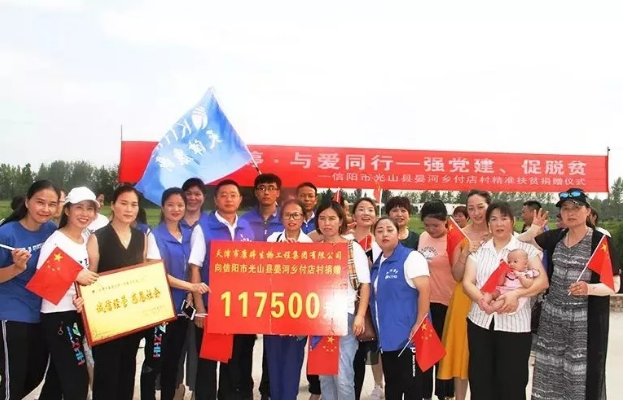 脱贫致富,除了物质生活水平需要提高,村民们的文化素质及精神生活也需要提高和丰富。通过河南省信阳市市场监督管理局的牵线搭桥,天津市康婷生物工程集团有限公司河南省分公司派人专程赴付店村内考察,参考该村村干部的意见,结合该村的实际困难积极协调,捐款用于该村修建面积为700平方米的文化广场,同时安装路灯15盏,为脱贫攻坚注入文明新风。