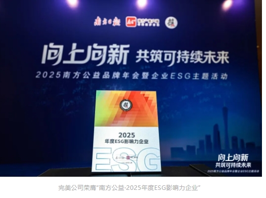 【直报网北京9月1日讯】(完美)8月29日,由南方日报社、南方+客户端、南方公益智库主办的2025南方公益品牌年会暨企业ESG主题活动在广州举行。本次活动以“向上向新 共筑可持续未来”为主题,在延续深耕企业公益实践领域的基础上更进一步,聚焦企业可持续发展的鲜活实践,首次重磅发布“2025年度ESG影响力企业”与“2025年度ESG创新力企业”两大权威榜单。完美(中国)有限公司(简称“完美公司”)以“践行长期主义与可持续发展 完美公司讲好中国健康产业现代化故事”项目荣膺“南方公益·2025年度ESG影响力企业”。