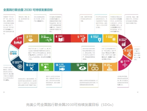 今年,完美公司发布《完美(中国)2024可持续发展报告》(简称《报告》),这是完美公司发布的第3份可持续发展报告暨第10份社会责任报告。《报告》以“共同成长,完美生活”为主题,深度融入联合国可持续发展目标理念,围绕“与完美共进”“与中国同心”“与时代偕行”三大主题篇章深入展开,以严谨、全面的视角对17项联合国2030可持续发展目标(SDGs)逐一作出回应,从环境、社会、治理等多方位向公众展示了完美公司2024年在可持续发展管理、社会责任实践方面的履责成效。