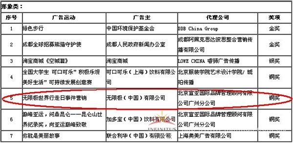 直报网北京10月12日电(记者发自无限极的报道)9月25日,中国广告协会举办的2011年中国艾菲奖颁奖盛典在沈阳举行,无限极世界行走日事件营销获颁艾菲媒体实效奖形象类铜奖。 主办单位高度认可无限极2010世界行走日活动,认为其结合自身行业特点,区隔于同类活动,充分借力当年行走名人(暴走妈妈等)的影响力。此外,活动不追求盲目高端诉求,结合富有中国人情味的电视广告片(TVC),根据各举办城市特点设计活动亮点,创造了针对中国消费者的人情味营销。 该奖项的获得,是对无限极世界行走日活动的权威认可,这更坚定了我司持续举办这一大型社会公益活动的信心与决心。全部获奖名单请点击艾菲官网:http://www.effiechina.org/a/aifeixinwen/2011/0928/490.html 关于艾菲奖 艾菲奖,1968年由美国营销协会(AMA)创立, 2003年中国广告协会与美国营销协会正式签署协议,将艾菲奖正式引入中国。中国艾菲奖完全与国际接轨,与美国、欧洲、亚洲、美洲等国家与地区执行同一评审标准、使用同一标志,具有同等的国际权威性。 中国艾菲奖是在全套引进国际(美国)艾菲奖的完整理论、评估体系基础上,根据中国市场情况,以广告运动、营销手段、传播效果、创意创新程度为主要的评估指标,是中国本土唯一一个以广告运动全案为评估对象的广告奖项,被誉为广告界的“奥林匹克团体奖”,它将荣誉同时颁发给广告主与广告代理公司。 本次获奖项目均为知名度较高的公众营销案例,如奥美互动与新浪联合打造的“尊尼获加‘语路’计划”,江苏卫视的“《非诚勿扰》打造中国婚恋交友节目标杆”项目,以及联合利华的多芬项目等。▲ |