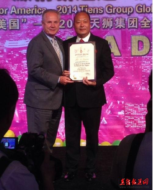【直报网5月4日讯】当地时间4月29日,天狮“激情美国”之旅抵达美国天使之城——洛杉矶,贵宾晚宴于好莱坞环球影城隆重召开。天狮全球精英齐聚好莱坞巨星新闻发布会现场进行高端贵宾晚宴,同时召开Richyone品牌发布会,尽显时尚魅力!洛杉矶市市议员Tom LaBonge先生亲临晚宴现场,代表洛杉矶市政府向所有到场的天狮贵宾致以最诚挚的问候和欢迎,并向李金元董事长授予由洛杉矶市议会主席Herb.J.Wesson亲笔签名的荣誉证书。作为晚宴的一个重要环节,Richyone(利奇·梵)高端奢侈品品牌被隆重推出,这标志着这一高端时尚品牌正式迈出国门被推向了全世界。 |