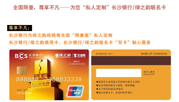 (原标题:绿之韵携长沙银行 推全国限量私人定制联名卡)