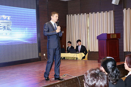 长成国际商学院执行院长陈文和现实致开场词 【直报网12月3日讯】(富迪)今日所选,铸就明日赢家!2014年11月24日,富迪长成国际商学院重磅推出的 在河南牡丹之乡——洛阳拉开序幕!长成国际商学院执行院长陈文和先生亲自挂帅,率领众教育总监齐上阵,为河南家人奉上了两天一夜的精彩课程!富迪区域总监曹杰先生、市场优秀经销商牛国川先生和贾丽君女士出席会议,吸引了上百家人前来学习! 陈院长率先登台,伴随拍拍操的旋律将全体家人带入轻松欢乐的会议氛围!随后,陈院长为大会致辞,他感谢富迪河南分公司对会议的支持,感谢洛阳富迪家人的激情相邀,更感谢陈董的大爱把我们彼此紧紧相连!他更具体阐述了“明日赢家,重在今日所选”的深刻内涵,观点的标新立异为大家开启了一扇全新的思维之窗,令家人兴奋不已!