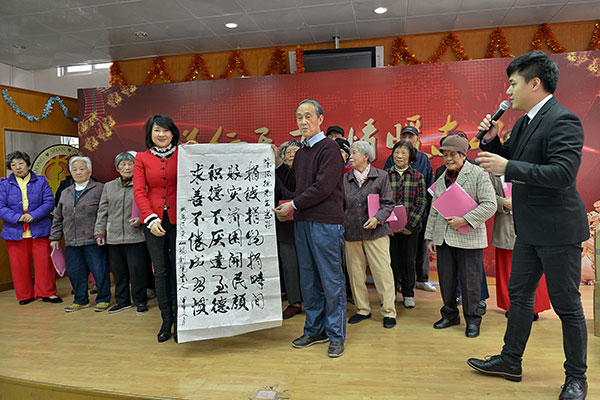 拿到红包和礼品的老人们笑逐颜开