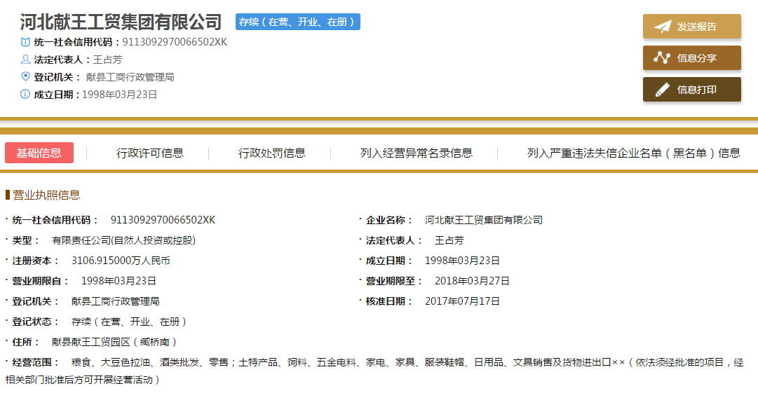 献王工贸董事长王占芳先生 直销头条网编辑在国家企业信用信息公示系统查询到献王工贸成立于1998年03月23日,注册资金3106万人民币,法人代表王占芳,董事长王占芳,监事李国杰,董事有张国丰,杨华,股东有王占芳、王硕、冯文东、王伟丽。