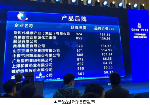 【直报网北京5月13日讯】(新时代)5月9日,在第三个“中国品牌日”来临之际,“2019中国品牌价值评价信息发布暨中国品牌建设高峰论坛”在上海举行。新时代健康产业集团国珍品牌以品牌强度924、品牌价值161.33亿元再创新高,在全国众多的参评企业中脱颖而出,位列产品品牌价值榜第二名!