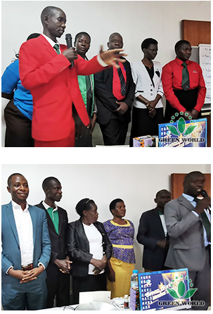 【直报网北京8月13日讯】(沃德绿世界)2019年7月8日,绿世界非洲区域乌干达分公司携国际商学院在首都坎帕拉召开事业说明会。乌干达分公司总经理任军锋先生、国际商学院执行院长王芊女士及国际优秀讲师李明宇先生出席。 会议首先由乌干达分公司总经理任军锋先生致辞,继而由国际商学院优秀讲师李明宇先生进行事业说明会讲解,由国际商学院执行院长王芊女士为与会者进行“蓝莓饮”产品效果演示实验,并详细讲解了植物营养因子课程。 参会的高级别领导人分享了自己的成功经验,讲述了自己由于绿世界产品的帮助,解决了健康问题的困扰;自己如何摆脱了过去贫苦的日子,开始了现在衣食无忧的生活,成功获得了绿世界的旅游奖及小车奖等经历。 演讲不断被掌声和欢呼声打断,约20名新人现场报单。