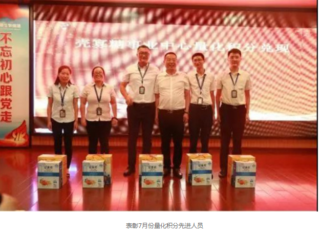 表先进 勇向前 会议中,表彰了7月量化积分先进人员,并邀请集团董事、常务副总裁刘中伟为获奖者颁奖。
