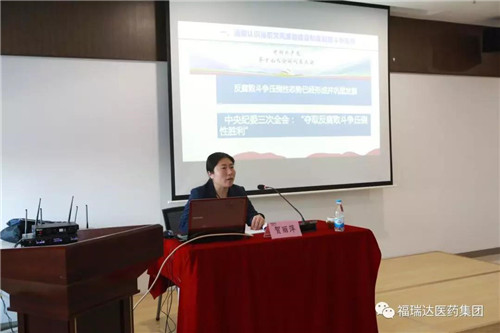 【直报网北京12月16日讯】(福瑞达)为进一步推进党风廉政建设,引导党员领导干部树立廉洁自律意识,筑牢拒腐防变思想防线,12月12日,福瑞达医药集团党委特邀省纪委监委第五监督检查室贺丽萍处长讲授党风廉政警示教育专题党课。党课由福瑞达医药集团党委委员、纪委书记冯绪华主持,领导班子成员、总部中层及以上领导干部,直属各单位班子成员、支委成员及党务、纪检工作人员等近50人参加。 贺处长以《清醒认识反腐败斗争形势,推进国有企业党风廉政建设》为题,以中央政策方针为主,辅以国企实际案例,为党员领导干部上了一堂生动的廉政警示教育课。党课分为四个部分,一是讲明了当前党风廉政建设和反腐败斗争形势,使党员领导干部深刻把握党中央部署要求;二是深入联系我省国企领域党风廉政建设实际,以身边事教育身边人,切实增强了责任感和使命感;三是阐释了如何正确认识和把握“四种形态”,为党委、纪委落实好党风廉政建设主体责任和监督责任提供了指导;四是着重强调了作为党员领导干部如何牢固树立廉洁自律意识,引导筑起拒腐防变的坚固堤坝。 ![]()