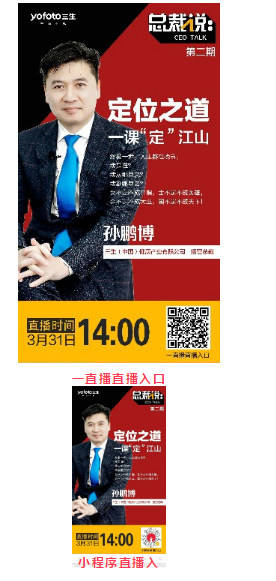 【直报网北京3月31日讯】(三生中国) 怎么找准自己的人生定位? 在事业途中如何选择创业平台? 三生如何实现你的梦想赋能? 总裁说零距离,一课“定”江山 三生(中国)运营总裁孙鹏博 带你一起探寻人生的定位之道 3月31日(星期二)14:00