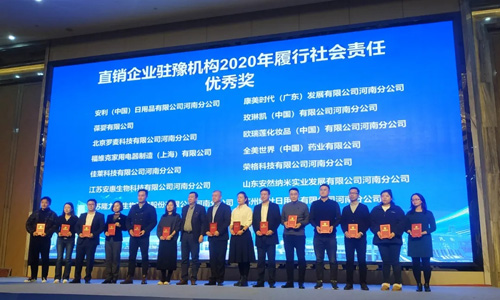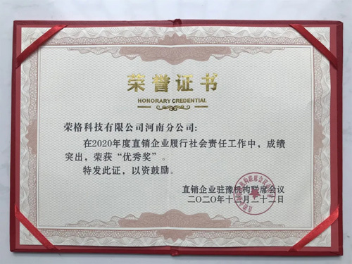 【直报网北京12月28日讯】(荣格)2020年12月22-23日,为期两天的“2020年度河南省规范直销行政指导会暨直销企业驻豫机构联席会议”在河南省三门峡市召开。 河南省市场监督管理局副局长李澍田、三门峡市副市长孙继伟、国家市场监督管理局直销监管处处长李浩永莅临会议指导并致辞。 河南省18个省辖市及10个县(市)市场监管局有关负责人,以及驻豫44家直销企业分支机构代表参加了此次会议。 联席会议指出,中国直销行业30年的发展历程,对大健康产业和社会做出积极贡献,政府依法支持直销企业规范发展,直销企业依法规范直销经营行为,共同打造企业健康发展的成长空间,希望各企业依法合规经营、诚信发展,为社会做出更多的贡献。 联席会议对“2020年驻豫直销企业履行社会公益责任优秀、先进奖”获得单位予以表彰。 ![]() 深圳市荣格科技有限公司河南分公司在2020年度履行社会责任活动中,心系社会责任,守护初心担当,积极参与抗击我省新冠肺炎疫情,捐款用于河南省人民医院抗击新冠肺炎疫情活动中表现突出。在此次会议中受到河南省直销企业驻豫联席会议办公室的表彰,荣获“2020年驻豫直销企业履行社会公益责任优秀奖”。 ![]() 自1999年成立以来,荣格在做好企业经营的同时,从以产品质量为核心“铸就世界品牌,打造百年荣格”的愿景初心,到“诚信、仁爱、勤奋、感恩”的企业文化,荣格始终践行社会公益,勇担社会责任,为社会贡献自己的一份力量。