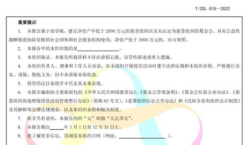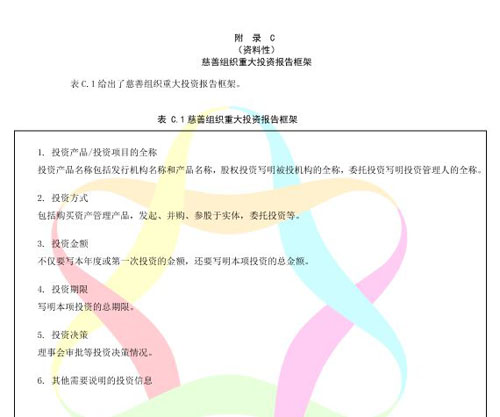 ![]() 【直报网北京4月21日讯】(中脉)本文件按照GB/T 1.1—2020《标准化工作导则 第1部分:标准化文件的结构和起草规则》的规定起草。本文件由中国慈善联合会提出。本文件由中国慈善联合会团体标准化技术委员会归口。本文件起草单位:北京博能志愿公益基金会、北京善泽君咨询有限公司、中证金牛(北京)投资咨询有限公司、天弘基金管理有限公司、育泉资产管理有限责任公司、中脉公益基金会、深圳市鹕说财税股份有限公司。本文件主要起草人:刘文华、徐建军、杨海燕、梁媛媛、刘立芳、鹿宝、刘自敏、裴勇、谢晓霞、胡绵鹏、伍华、刘金兰、彭斌、赵星宇、赵志雄。 ![]() ![]() ![]() ![]() ![]() ![]() ![]() ![]() ![]() ![]() ![]() ![]() ![]() ![]() ![]() ![]() ![]() ![]() ![]()
