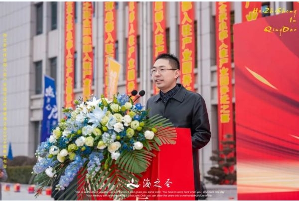 青岛海之圣生物工程有限公司领航人刘家齐博士为庆典致辞。他首先对大家的到来表示了感谢,并回顾了企业近三年来重构战略支撑,破局从0到1的奋斗历程。他表示,海之圣全球总部入驻产业园,公司将全方位提升产业园建设的硬实力和软实力,成为同气连枝、扎根筑梦的地方,成为熔铸全球伙伴的家乡热土。海之圣公司一如既往秉承初心,坚持长期主义,坚持高质量发展,坚持共创共享共赢,为抗衰市场的发展提供最有力的支撑,打造最坚强的后盾,成为最切实的保障。他同时表示,在新的征程上,海之圣公司将进一步强化“五化管理目标”,深化“市场七化战略”,赋能全球抗衰市场的发展,携手伙伴,共创全球抗衰领军企业与领导品牌,让中国企业走出去,中国产品走出去,中国品牌走出去,中国文化走出去。