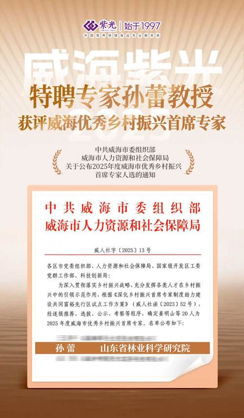![]() 【直报网北京9月1日讯】(威海紫光)8月19日 ,中共威海市委组织部、威海市人力资源和社会保障局公布「2025年度威海市优秀乡村振兴首席专家人选」,威海紫光特聘专家孙蕾教授成功获评。 威海紫光通过引入人才,持续强化无花果产业的科研与产业化能力,为区域乡村振兴注入持续动力。 科研引领 夯实无花果产业技术基础 ![]() 威海紫光自2007年深耕无花果产业以来,始终锚定特色农业与乡村振兴深度融合的发展方向,将人才引育与科研创新作为产业发展的核心支撑。引入孙蕾教授等专业人才后,公司进一步加大无花果产业科研投入力度,科研硬实力显著提升:建成 1500 平方米以上研发中心,配套 6 大课题研究室及 CNAS 检测中心,与山东大学(威海)、齐鲁产业大学、山东省林科院、山东农业大学等高校科研院所,构建深度产学研合作机制,聚焦无花果产业关键技术瓶颈开展联合攻关。 依托人才汇聚形成的科研合力,威海紫光在无花果领域科研成果持续涌现:无花果系列产品研发、无花果保健酒研发获威海市科技奖;无花果智能分级的随机森林算法模型构建应用及加工新产品研发获中国商业联合会全国商业科技奖;特色浆果采后关键技术研发及产业化项目获国家林业和草原局梁希林业科学技术奖。截至目前,公司累计拥有自主知识产权 28 项,参与制定国家标准及行业标准 5 项,其中 2 项已颁布实施,研发新产品近千个,其中无花果相关产品覆盖七大品类 60余款,为无花果产业高质量发展构筑起坚实的技术基石。 产业升级 打造无花果全产业链 ![]() 以科研突破为支撑,威海紫光充分挖掘崮山区域农业资源禀赋与生态优势,构建 “科研 + 生产 + 展示 + 文化” 一体化的无花果全产业链生态圈。该生态圈涵盖 15000 平方米控温实验基地、20000 平方米标准化生产车间及 3000 平方米主题博物馆,成功推动无花果产业实现从 “小果子” 到 “大产业” 的跨越式发展。 当前,园区内无花果产业园、生态观光园、特色产品展销中心协同联动,形成 “科研赋能生产、生产带动文旅” 的良性发展模式。这一模式既有效提升无花果产品附加值,又拓展了特色农业的多元价值空间,为乡村产业转型升级提供了可复制、可推广的 “威海紫光样本”。 助农富农 带动乡村经济繁荣发展 着眼于助农富农,威海紫光将无花果产业发展与农户增收致富紧密结合,创新实践 “公司 + 基地 + 农户” 产业联结模式。截至目前,公司在周边农村布局原料种植基地,覆盖 16 个村庄,直接带动 361 户农户参与,户均年增收达 3000 余元,实现农产品从 “田间” 到 “车间” 的稳定对接。 ![]() 同时,公司依托规模化种植示范园区与智能化生产车间,组建由专业人才构成的导师团队,深入农村一线为农户提供无花果种植技术指导与系统化培训,切实提升农户种植管理水平与产业效益。此外,公司优先吸纳农村剩余劳动力就业,累计提供就业岗位 36 个,真正实现 “技术助农、就业富农”,有力推动传统农业向现代特色高效农业转型,实现当地经济发展与农户收入增长的双赢格局。