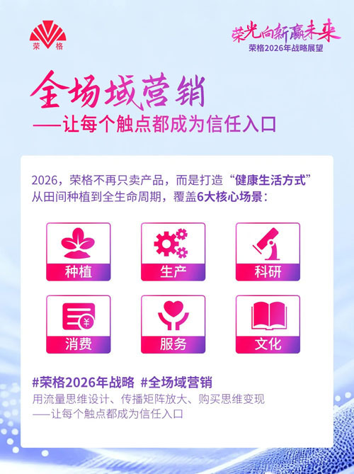 【直报网北京12月18日讯】(荣格)12月15日,我们共同见证了荣格发展史上又一重要时刻——“荣光向新·赢未来——荣格2026年战略展望会”隆重召开。会上,荣格对2026年发展战略、品牌战略及人才战略进行展望,为未来的前行之路,锚定新的方向。 荣格科技集团总裁、荣格科技总经理张阳辉先生在会上发表重要讲话,他提出荣格2026年要围绕“全场域营销·融生态共赢·高质量发展”的核心纲领,全面推进企业战略升级。 今天,让我们一起通过图解来展望这三大战略支柱——从“全场域营销”如何重塑用户连接,到“融生态共赢”怎样构建组织韧性,再到“高质量发展”如何引领我们走向世界级舞台。 荣格2026年战略展望 ![]() ![]() ![]() ![]() ![]() ![]() 2026,荣光向新赢未来! 2026,是全新的起点。 “荣光向新·赢未来”——这场变革,关乎产品,更关乎生态;关乎增长,更关乎责任;关乎今天,更关乎百年。 未来的荣格,将是一个——有温度的品牌、有韧性的组织、有格局的平台、有信仰的共赢体。 让我们携手并肩,以战略为帆,以信念为舵,在高质量发展的浪潮中,共创健康文明,共赴星辰大海!