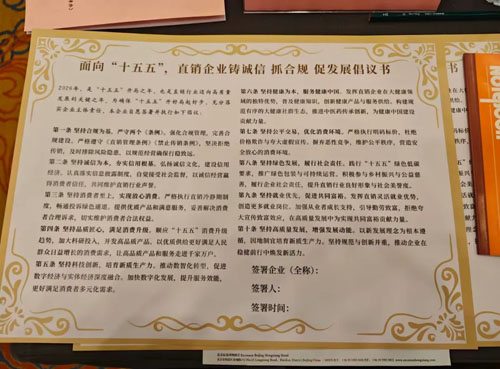 铸诚信 抓合规 促发展 ![]() 【直报网北京3月23日讯】(九极)3月13日,以“铸诚信 抓合规 促发展”为主题的直销监管与消费者权益保护3·15圆桌座谈在北京举行。作为国内直销行业的重要一员,广东九极生物科技有限公司(以下简称“九极”)受邀参会,与16个省级市场监管部门代表及69家直销企业同仁围绕行业规范与消费者权益保护展开深入交流,共同探讨行业未来发展方向。 会议传达了“十五五”规划中关于“加快建设健康中国”“大力提振消费”“强化消费者权益保护”等宏观导向,指出这既是直销企业肩负的时代使命,也是必须落实的经营准则。在全面建设社会主义现代化国家的新征程上,九极作为直销行业规范经营的企业一员,主动把握机遇,坚守正道,创新发展,为行业在“十五五”期间开好局、起好步贡献力量。 ![]() *图源“中消报直销动态”公众号 市场监管总局相关司局负责同志在会上强调,合规是直销企业稳健发展的生命线和压舱石。当前,部分企业在消费者权益保护方面仍有不足,个别企业甚至存在违法违规隐患,这些问题已成为制约行业高质量发展的突出障碍。因此,企业必须切实承担起主体责任,健全内部合规管理体系,坚决守住依法经营底线,始终将消费者利益置于首位。 九极作为专注于美体塑身衣、护肤品、保健品等领域的直销企业,始终将消费者权益保护放在首位。此次参会,九极代表认真聆听了监管部门的最新政策解读,并与同行交流了合规经营与消费者权益保护的经验——九极更加清晰地认识到合规经营的重要性,也坚定了企业以诚信为本、以消费者为中心的发展理念。 ![]() 九极将积极响应“十五五”规划号召,抓住健康与美丽产业发展的时代机遇,持续提升产品质量和服务水平,为消费者提供更安全、更优质的产品。 会议期间,九极公司与所有与会直销企业代表共同签署了《面向“十五五”:直销企业铸诚信 抓合规 促发展倡议书》,承诺将严格遵守法律法规,加强行业自律,共同维护直销市场的健康秩序。 ![]()