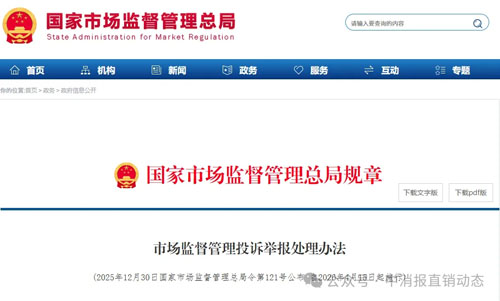 【直报网北京4月14日讯】(中国消费者报)市场监管总局发布的《市场监督管理投诉举报处理办法》(以下简称《办法》),自2026年4月15日起正式施行。《办法》为直销企业处理投诉举报、加强合规建设提供了重要的法律依据。 ![]() 《办法》根据《中华人民共和国消费者权益保护法》《中华人民共和国消费者权益保护法实施条例》等法律、行政法规制定,通过优化投诉举报程序,明确投诉受理范围等,进一步强化了消费者权益的保护。 《办法》鼓励和引导经营者建设消费维权服务站、消费维权绿色通道,建立健全首问负责、先行赔付、在线消费争议解决等制度,及时预防和解决消费者权益争议。这让直销企业在处理投诉时有了基本遵循,也为直销企业的合规建设指明了方向。 《办法》同时明确不能滥用投诉举报权利,通过侵害经营者的合法权益,牟取不正当利益。《办法》列举了市场监督管理部门不予受理投诉的情形,如不是为生活消费需要购买、使用商品或者接受服务,或者不能证明与被投诉人之间存在消费者权益争议的;除法律另有规定外,投诉人知道或者应当知道自己的权益受到被投诉人侵害之日起超过三年的;冒用他人名义或者拒不配合市场监督管理部门核验真实身份信息的等,这对长期受“职业打假人”困扰的直销企业而言,无疑是大有裨益的。《办法》还明确对敲诈勒索、骗取赔偿等违法索赔的终止调解,并移送公安机关依法处理,这对营造良好法治营商环境也有着非常重要的现实意义。 2026年3月13日,直销监管与消费者权益保护3·15圆桌座谈活动在京举办,市场监管总局价监竞争局有关负责同志明确指出,直销企业要牢固树立“合规就是生命线”的理念。69家参会直销企业代表现场签署的《面向“十五五”,直销企业铸诚信抓合规促发展倡议书》,第一条强调的就是“强化合规管理,完善合规建设。”