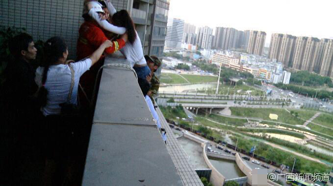 ![]() 【直报网北京6月6日讯】(北京时间)6月5日,广西南宁一小区内,一名三十多岁的女子爬上了18楼天台,情绪激动企图跳楼。女子现场整个人跨过护栏,坐在悬空的外墙支架上,情绪看起来很不稳定。 ![]() 跳楼女子家人称:她是因为误入传销组织被骗了60万,还受到恐吓和殴打,一时想不开要走上绝路。 ![]() 事发当时现场女子已在太阳下暴晒将近3小时,再加上一天没吃东西,人已经开始不清醒有些摇摇欲坠。 ![]() 晚上7点的时候,在消防的配合下小区保安成功的将跳楼女子救下。 ![]() ![]() ![]() 图为现场。 (原标题:女子传销被骗60万 站高楼外墙支架上跳楼) 责任编辑:张小七 解读新闻热点、呈现敏感事件、更多独家分析,尽在以下微信公号,扫描二维码免费阅读。
