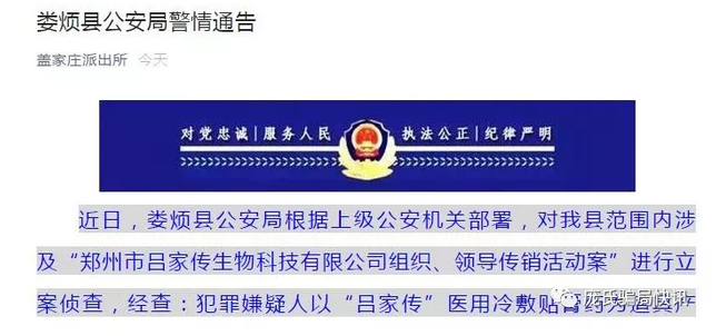 【直报网北京1月28日讯】(盖家庄派出所)庞氏骗局快讯今日了解到,近日,娄烦县公安局根据上级公安机关部署,对我县范围内涉及“郑州市吕家传生物科技有限公司组织、领导传销活动案”进行立案侦查。 经查,犯罪嫌疑人以“吕家传”医用冷敷贴膏药为道具产品,利用线上线下虚假宣传,设置入门费,以分红返利回报为诱饵,拉人头发展下线来骗取会员,直接或间接下线人数较多,涉及资金数额较大,在全县造成一定影响。 “吕家传”膏药代理级别共分为天使、合伙人、董事、官方四个级别,且依次递升。其中,天使级别只需要购买5盒吕家传膏药即消费550元便可直接晋升,合伙人级别需要购买30盒即消费2700元,董事则需要200盒即消费14000元,而拿货1000盒即消费55000元便可直接晋升最高级别即官方。官方级别的代理商还将额外获得高分成比例,分红比例最低4500元,最高220万封顶。 “成为会员后,只要别人从你这拿货以后就是你底下的人了,不会存在他越过你直接去找平台拿货,而且你下面的人销售的也算你的,升级官方后就不用卖货了,直接可以吃后面的人的销售额的奖励,也就是分红。” 2019年1月24日,犯罪嫌疑人高某某(女)、郝某某(女)二人因涉嫌组织领导传销活动罪已被我局依法采取刑事强制措施。为切实保护人民群众的合法权益,严厉打击非法传销活动,维护我县社会经济秩序稳定,现通告如下: 一、对于在我县范围内进行传销违法犯罪活动的人员,公安机关将依法严惩不贷;凡组织参与各类传销活动的人员,必须立即停止一切违法犯罪活动,主动到公安机关投案自首,如实供述违法犯罪事实,争取从宽处理,积极配合公安机关开展调查取证工作。 二、严禁任何单位或者个人将房屋出租给从事传销活动的人员,严禁为传销活动提供场所,已出租的要立即收回并终止租赁关系,否则将依法予以处罚。 三、国家明令禁止一切传销活动,任何单位和个人不得以任何名义任何形式组织参与传销活动,广大人民群众要充分认识传销活动的危害性,远离传销、防范传销,对于身边参与传销的亲朋、同事等要进行教育挽救。 ![]() 四、为方便群众报案举报,我局在经侦大队及八个派出所共设立九个涉众型经济犯罪案件报案受理点,希望广大群众积极举报非法传销等违法犯罪线索。