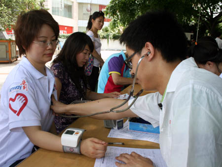 直报网北京6月13日电(四川新闻网报道)6月11日正午虽然阳光炙热,300多名安利四川分公司的志愿者却顶着酷日,安静地排在成都金牛区政务中心前的广场上逐一接受身体检查。当天,每年一度的安利无偿鲜血周活动在此启动,最终有217人志愿者为成都市血液中心无偿献出75400毫升鲜血。 “今天是安利四川分公司成立14周年的纪念日。为缓解因为天气逐渐炎热导致的用血紧张,也为了回馈社会各界多年来对安利公司的认可与支持,我们特意组织安利员工来此开展无偿献血活动,希望能够通过我们的榜样作用带动更多爱心人士奉献爱心,帮助他人。”安利四川分公司相关负责人告诉记者,今年的安利无偿鲜血周活动将在成都、宜宾、绵阳等十个川内城市陆续开展,为期一周的本次活动预计将有超过600名安利志愿者参加,“我们希望在回馈社会的同时,也把这次活动当成一份特殊生日礼物献给公司。” 当天参加采集血液的成都市血液中心工作人员告诉记者,虽然近期血液中心的血液能够满足医疗需要,但随着天气的转热愿意自愿献血的市民确有减少,“安利志愿者每年都在这个时候奉献爱心,不但帮助我们充实了血液库存,更为社会做出了一种表率和榜样,其精神值得敬佩和学习。” 由于参与献血的安利志愿者大大超出了预期人数,当天的献血活动一直持续到晚上7点前后才告一段落。据最后统计,全天共有300余名安利志愿者接受了身体检查,其中217人符合献血条件,他们共为成都市血液中心无偿献出了75400毫升鲜血。 记者获悉,早在1997年安利公司就开始尝试不定期组织员工和营销人员参与义务献血。10多年来,公司光在四川地区就已先后组织开展义务献血29次,为四川的医疗事业做出了重要贡献。▲ |