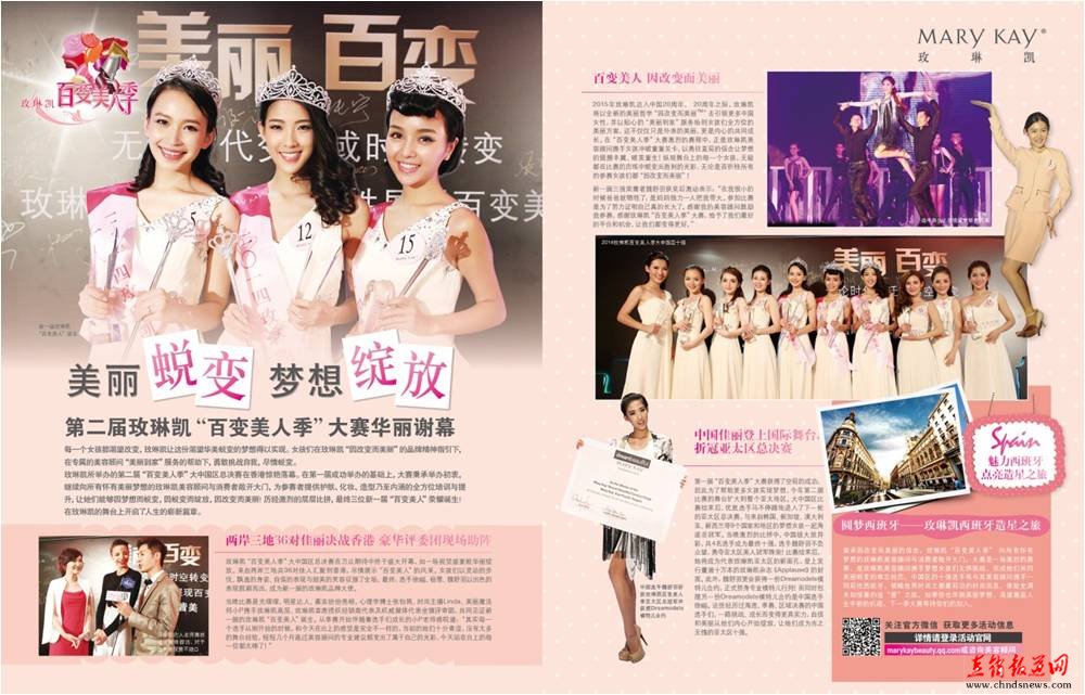 杂志大刊竞相推送 《嘉人》《瑞丽服饰美容》《米娜》12月刊精彩讲述蜕变背后的故事。 注:嘉人、瑞丽、米娜、时尚芭莎、时尚健康、伊周、都市丽人将于12月刊报道活动盛况,敬请期待! 梦想因蜕变而绽放,在玫琳凯迈入20周年之际,希望更多女性加入蜕变的盛宴,谱写更多精彩篇章! 2015百变美人季,不见不散!▲ (原标题:玫琳凯“百变美人季”的蜕变奇迹 80家媒体竞相报道) 责任编辑:宝蓝 |