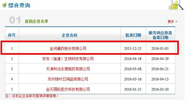 【直报网北京6月3日讯】(商务部)昨日,记者在商务部直销行业管理信息系统中获悉,金诃藏药股份有限公司获得了第76张直销牌照,且批准时间为2015年12月23日,服务网点核查备案日期为2016年5月5日。