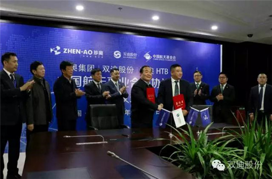 双方代表共同签署合作协议 【直报网北京11月23日讯】(双迪)中国飞天大业,珍奥双迪责无旁贷。11月22日下午,珍奥集团、双迪股份、上海珍奥生物与中国航天基金会在大连珍奥双迪生物谷举行签约仪式,珍奥集团、双迪股份、上海珍奥生物正式成为“中国航天事业合作伙伴”。珍奥核酸类保健食品、双迪富氢系列器械产品、HTB托玛琳功能性纺织产品将为中国航天事业提供健康保障。珍奥双迪获得此次授权意义重大,标志着珍奥双迪产品的科技和质量获得高度认可。 中国航天基金会秘书长、中国酒泉卫星发射中心原副司令员张玉江少将、中国航天基金会事业发展部部长杨爱民、中国航天基金会资金管理部部长魏华春、中国航天基金会秘书王强、珍奥集团股份有限公司珍奥集团董事长兼首席执行官陈玉琦、珍奥集团行政总裁刘洪、珍奥集团营销总裁张力、双迪股份副董事长兼执行总裁郑凤强、双迪股份副总裁鲁飞、双迪股份副总裁张磊等领导出席了签约仪式。 “航天能力是一个国家综合国力强大的标志,品牌知名度则反映了一个国家经济实力是否强大。作为一个有民族自豪感的民企,助力中国航天事业发展是珍奥双迪义不容辞的责任,也是全体珍奥双迪的骄傲。”珍奥集团董事长兼首席执行官陈玉琦表示,今天我们有机会同中国航天基金会合作,不仅对未来中国航天技术的发展,以及对中国健康产业的发展都将起到积极的作用,同时我们的合作,也将为国家的发展起到极大的促进作用,希望我们之间的合作有更大的发展,并取得丰硕成果。 珍奥双迪对航天事业的支持也赢得了中国航天基金会的赞誉,中国航天基金会秘书长张玉江少将表示,今天来到生物谷参观,看到企业的发展非常震撼,没有几家企业能像珍奥双迪这样,有那么多诺贝尔科学家走进珍奥双迪,真的很了不起。珍奥双迪所从事的健康产业是朝阳产业,我们同这样的企业合作很有发展前景。张玉江说,今后基金会将与珍奥双迪深度合作,共同为支持中国航天工程做出贡献。珍奥双迪事业很有发展前景,作为中国健康产业的领跑者,双方强强联合必将取得更大的成功,努力实现中国梦、航天梦、健康梦。 中国航天事业合作伙伴是中国航天事业最高级别的合作类型,中国航天事业合作伙伴的甄选有着非常严格的条件和程序,合作单位应为同行业中的领先企业,且社会形象好、企业实力强、技术含量高、产品质量过硬的民族品牌企业。 珍奥双迪自创立以来,始终坚持立足人类健康产业自主创新,坚持不懈致力于核苷酸、富氢、基因检测三大核心技术,将众多高端科技进行产业化,提升和改善人类生命和生活质量。 珍奥双迪品牌与中国航天事业的结盟,将激发珍奥双迪人以“以金造器,器器皆金”的理念,以“1%缺陷就是100%否定”的质量观,为中国航天事业和消费者提供最优的产品,助力中国载人航天工程再谱新篇。▲
