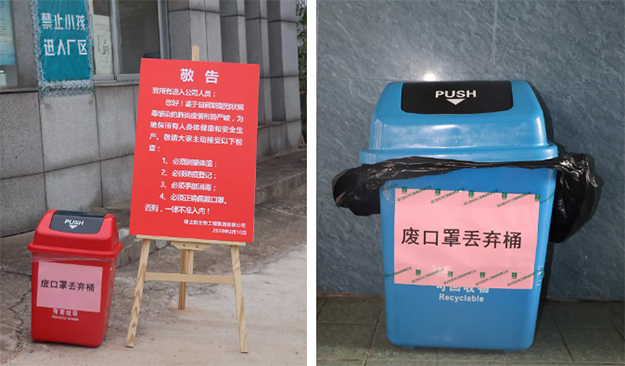 安保部门对负责区域严防死守,在门口设立消毒登记站,对进入办公区域的人员及车辆进行消毒、体温测量、发放口罩和免洗消毒液等。