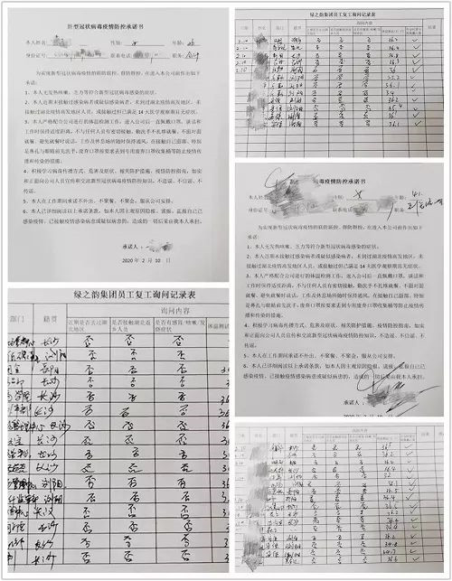 最严密的摸底排查 复工前,公司要求全体员工填写《健康信息填报表》,并签署《健康信息承诺书》,如实填报个人接触史,不得隐瞒、谎报、缓报,并建档管理,实时督查,真正对每一位员工及家人的健康安全负责。 ![]() 最严格的责任落实 公司第一时间成立疫情安全防控小组,及时制定应急处置预案,预案中甚至包含出现疑似病例以后的应急处置方案,各项防控措施均细化并责任到人。 ![]() ![]()